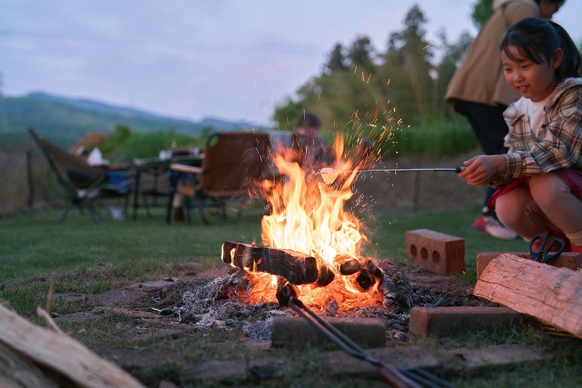 テントを張って焚き火をすれば、そこはまるでキャンプ場。